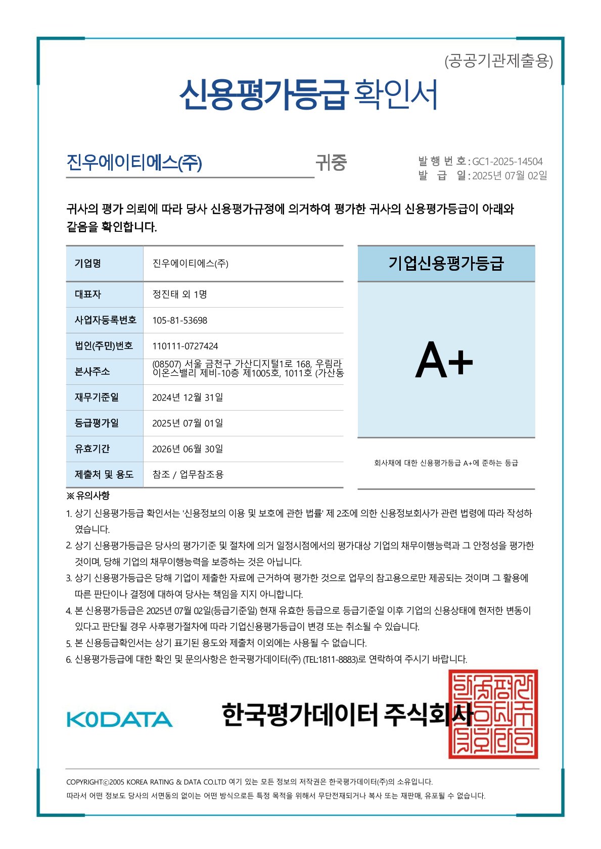 Credit Rating Certificate