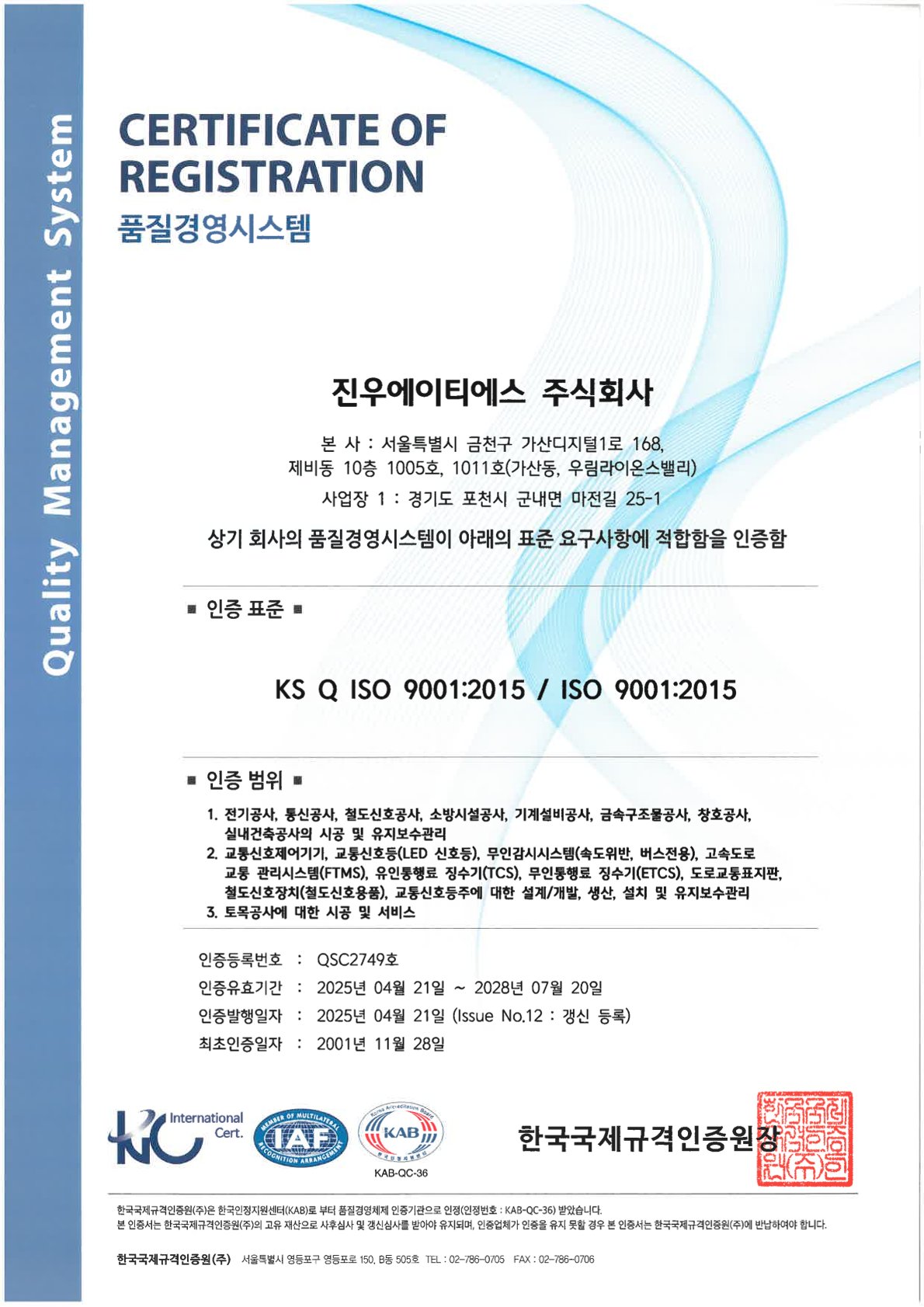 Certificate for ISO9001