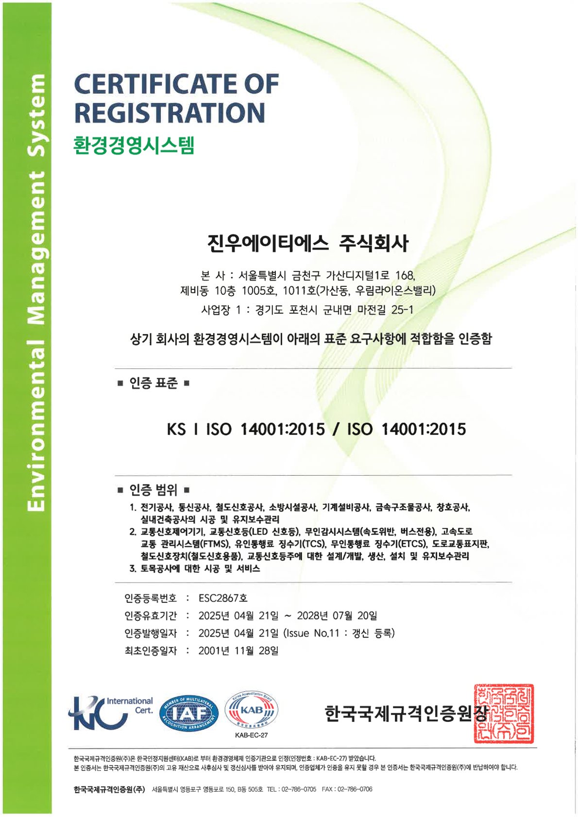 Certificate for ISO14001