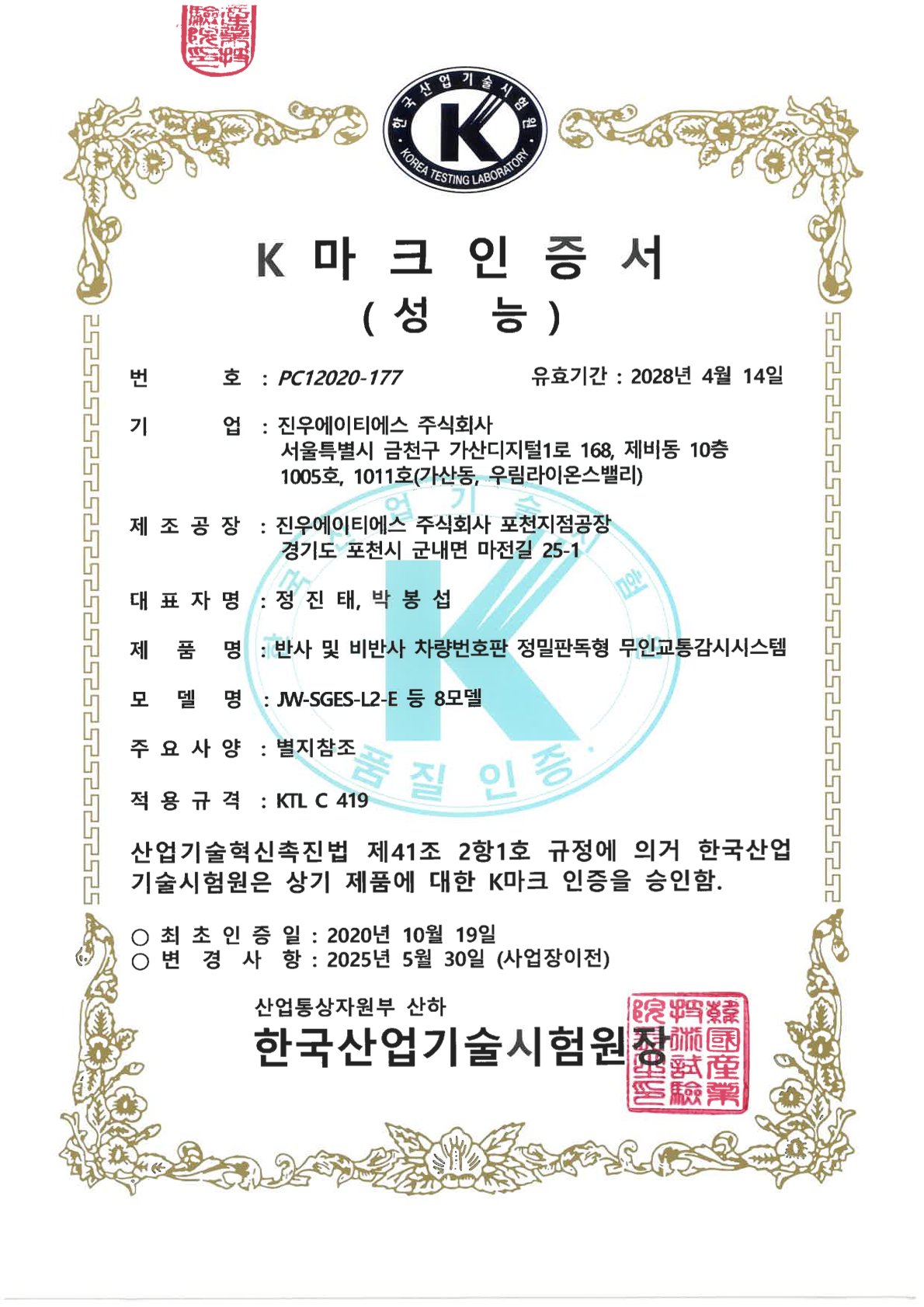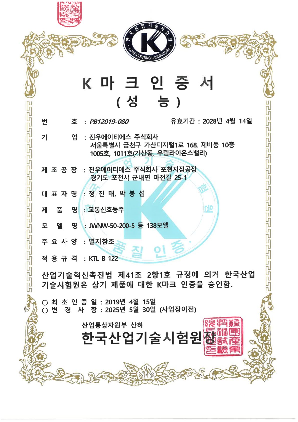 Traffic Signal Pole K Mark Certificate