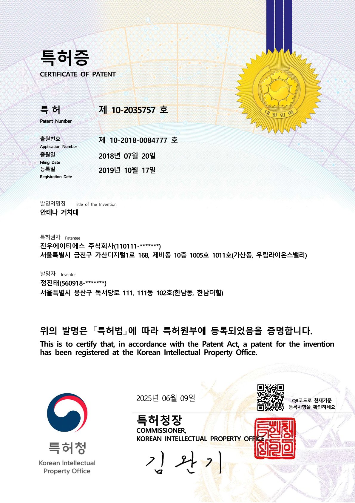 | 21 | 특허 | 안테나 거치대 | 10-2035757 |